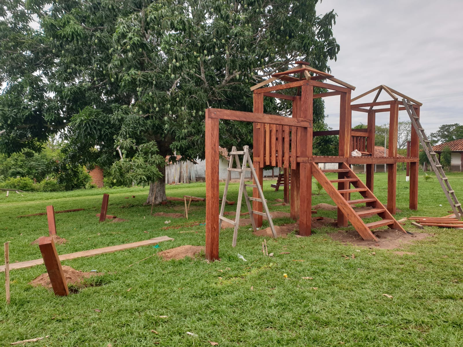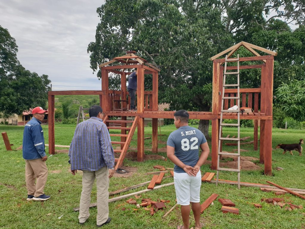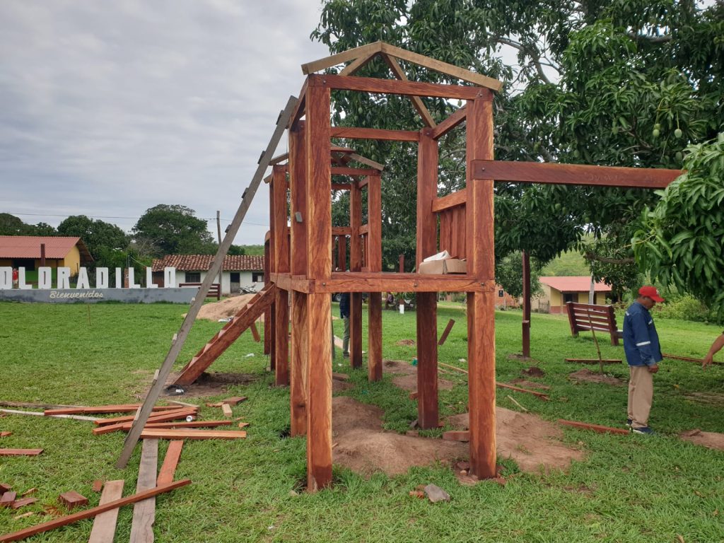 Here is the latest on the Coloradillo playground. They expect to dedicate it on December 19th when Omar and Ana and the LATCOM REDES Team will be out there to distribute Christmas Gifts to Chiquitano Children in about 12 communities. All that lacks is to paint it all and build the enclosed area around it.
